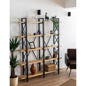 197-000033 Βιβλιοθήκη Trout pakoworld μασίφ ξύλο πεύκου φυσικό-μαύρο 149x27x185εκ