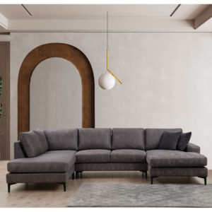071-001438 Γωνιακός καναπές PWF-0621 ύφασμα ανθρακί 314x200x90εκ