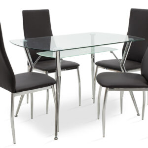 200-000136 Τραπεζαρία Jacob-Jella pakoworld σετ 5τμχ διάφανο γυαλί-κάθισμα μαύρο pu 120x75x75.5εκ