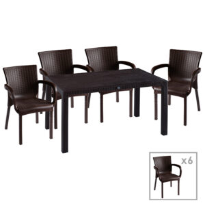253-000050 Τραπεζαρία κήπου Explore-Festive pakoworld σετ 7τεμ PP καφέ 150x90x73,5εκ