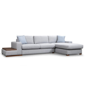 071-001212 Γωνιακός καναπές PWF-0543 pakoworld αριστερή γωνία ύφασμα ανοικτό γκρι-καρυδί 332x194x85εκ