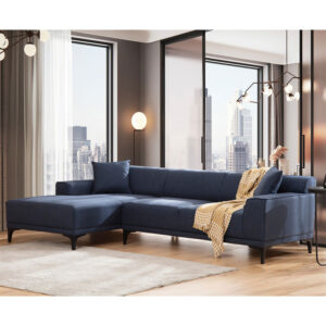 071-001365 Γωνιακός καναπές PWF-0566 pakoworld δεξιά γωνία ύφασμα μπλε 250x145x69εκ