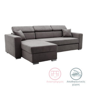 166-000006 Γωνιακός καναπές-κρεβάτι αναστρέψιμος Lura pakoworld ανθρακί 255x162x75-90εκ