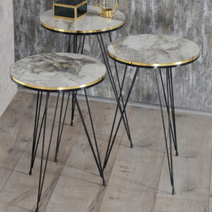 120-000340 Βοηθητικά τραπέζια Sebastian pakoworld σετ 3τεμ λευκό γκρι μαρμάρου-μαύρο