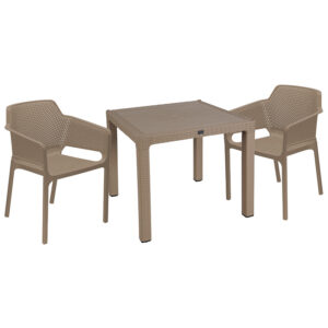 253-000068 Τραπεζαρία κήπου Explore-Integral pakoworld σετ 3τεμ PP cappuccino 90x90x73,5εκ