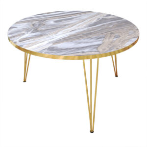 120-000258 Τραπέζι σαλονιού Nidra pakoworld απομίμηση λευκό μαρμάρου-χρυσό Φ70×40εκ