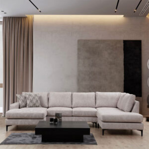 071-001436 Γωνιακός καναπές PWF-0621 ύφασμα μπεζ 314x200x90εκ
