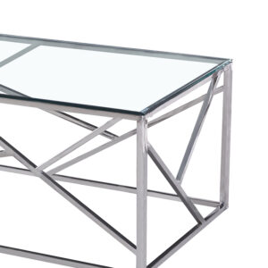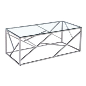 138-000005 Τραπέζι σαλονιού Mabs pakoworld ατσάλι ασημί-γυαλί 8mm 120x60x40εκ