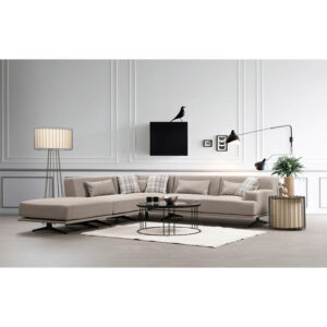071-001158 Γωνιακός καναπές PWF-0516 pakoworld δεξιά γωνία ύφασμα μπεζ-μαύρο 302x302x80εκ