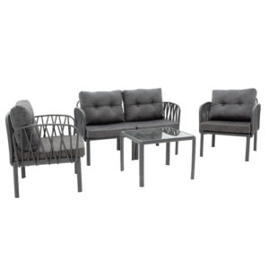 253-000004 Σαλόνι κήπου Intricate pakoworld σετ 4τμχ PP ανθρακί-ύφασμα ανθρακί antique