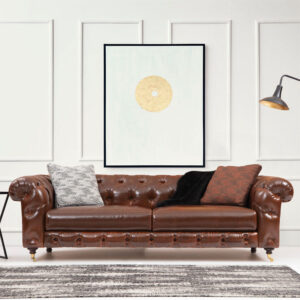 071-001407 Καναπές 3θέσιος PWF-0598 pakoworld τύπου Chesterfield ύφασμα καφέ 245x110x70εκ