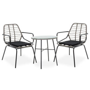 200-000374 Τραπεζαρία κήπου Gaus-Naoki σετ 3τεμ pakoworld μέταλλο μαύρο pe γκρι