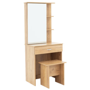 249-000026 Κονσόλα Zelia pakoworld με καθρέπτη και σκαμπό χρώμα φυσικό mo