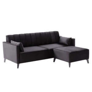 071-001339 Γωνιακός καναπές-κρεβάτι PWF-0576 pakoworld βελούδο μαύρο 206x88x80εκ