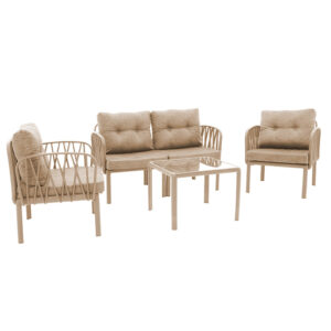 253-000005 Σαλόνι κήπου Intricate pakoworld σετ 4τμχ PP cappucino-ύφασμα μπεζ antique