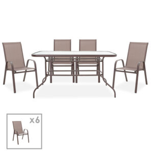 200-000384 Τραπεζαρία κήπου Valor-Calan σετ 7τεμ pakoworld μέταλλο-textilene καφέ
