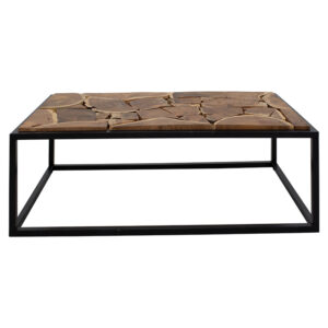 113-000015 Τραπέζι σαλονιού Sonia pakoworld μασίφ ξύλο καρυδί-μαύρο 120x60x40εκ