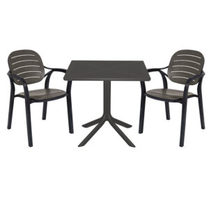 253-000089 Τραπεζαρία κήπου Groovy-Gentle pakoworld σετ 3τεμ PP ανθρακί 80x80x74,5εκ.