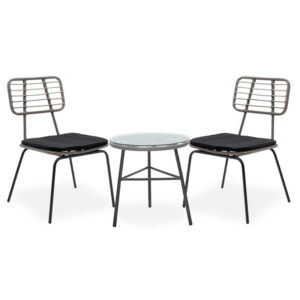 200-000365 Σαλόνι κήπου Gaus-Naoki σετ 3τεμ pakoworld μέταλλο-μαύρο-pe γκρι