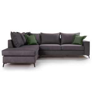 168-000036 Γωνιακός καναπές δεξιά γωνία Romantic pakoworld ύφασμα ανθρακί-κυπαρισσί 290x235x95εκ