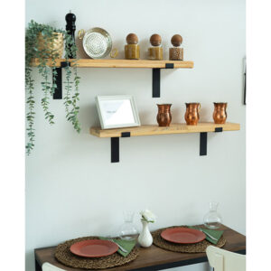 197-000029 Ραφιέρα τοίχου Gravity pakoworld μασίφ ξύλο πεύκου φυσικό-μαύρο 75x14x16.5εκ