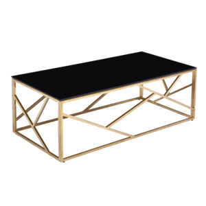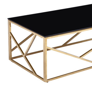 138-000002 Τραπέζι σαλονιού Tabar pakoworld ατσάλι χρυσό-γυαλί 8mm μαύρο 120x60x40εκ