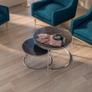 120-000350 Τραπέζια σαλονιού October pakoworld σετ 2τεμ μαύρο μαρμάρου-ασημί