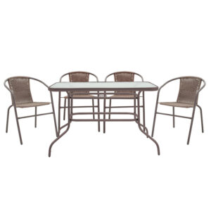 130-000044 Τραπεζαρία κήπου Valor-Obbi σετ 5τεμ pakoworld pe καφέ-μέταλλο 110x60x70εκ