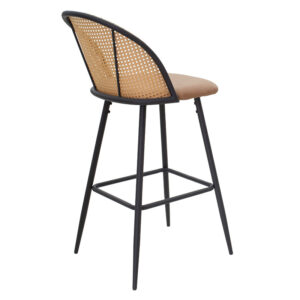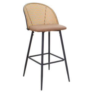058-000058 Σκαμπό μπαρ Kace pakoworld pe rattan φυσικό-pu καφέ ταμπά-μέταλλο μαύρο