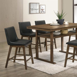 250-000002 Σκαμπό μπαρ Siera pakoworld μαύρο τεχνόδερμα – πόδια rubberwood καρυδί 45x58x95εκ.