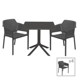 253-000081 Τραπεζαρία κήπου Groovy-Integral pakoworld σετ 5τεμ PP ανθρακί 80x80x74,5εκ