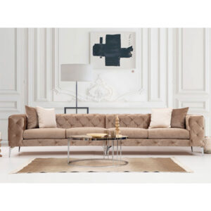 071-001410 Καναπές 4θέσιος PWF-0579 pakoworld τύπου Chesterfield ύφασμα μπεζ 344x90x72εκ