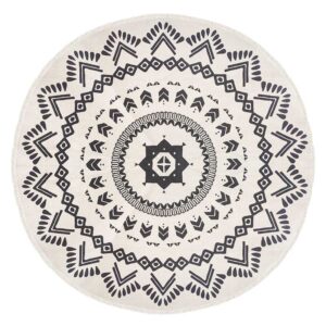 199-000153 Χαλί Nomade pakoworld βαμβάκι μαύρο-λευκό Φ120×0,5εκ