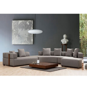 071-001486 Γωνιακός καναπές με δεξιά γωνία PWF-0600 pakoworld ύφασμα γκρι 360/300×70εκ
