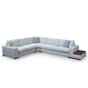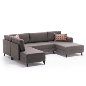 071-001184 Γωνιακός καναπές PWF-0530 pakoworld αριστερή γωνία ύφασμα μπεζ γκρι – καρυδί 322x282x85εκ.