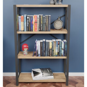 197-000063 Βιβλιοθήκη Connor pakoworld φυσικό ξύλο πεύκου sonoma-μαύρο 69x21x185εκ