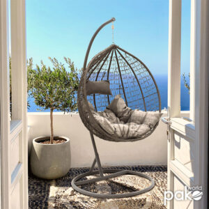 135-000001 Κούνια κήπου Zafer pakoworld κρεμαστή μέταλλο-pp-μαξιλάρι γκρι 106x103x200εκ