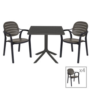 253-000082 Τραπεζαρία κήπου Groovy-Halcyon pakoworld σετ 5τεμ PP ανθρακί 80x80x74,5εκ