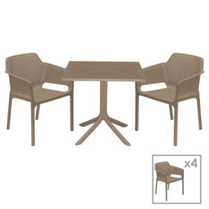 253-000092 Τραπεζαρία κήπου Groovy-Halcyon pakoworld σετ 5τεμ PP cappuccino 80x80x74,5εκ.