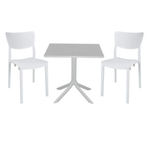 253-000104 Τραπεζαρία κήπου Groovy-Halcyon pakoworld σετ 3τεμ PP λευκό 80x80x74,5εκ.