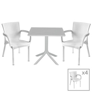 253-000106 Τραπεζαρία κήπου Groovy-Ignite pakoworld σετ 3τεμ PP λευκό 80x80x74,5εκ.