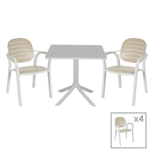 Τραπεζαρία κήπου Groovy-Gentle pakoworld σετ 5τεμ PP λευκό-cappuccino 80x80x74,5εκ Θέλετε ένα ανθεκτικό σετ τραπεζαρίας για το μπαλκόνι ή τον κήπο σας που θα αναβαθμίσει αισθητικά...