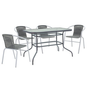 130-000045 Τραπεζαρία κήπου Valor-Obbi σετ 5τεμ pakoworld pe γκρι-μέταλλο γκρι ανθρακί 110x60x70εκ