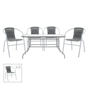 200-000324 Τραπεζαρία κήπου Valor-Tade σετ 5τεμ pakoworld μέταλλο-pe γκρι