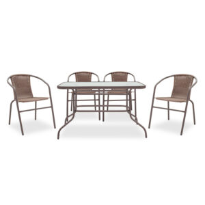 200-000483 Τραπεζαρία κήπου Paula σετ 5τεμ pakoworld μέταλλο-pe rattan καφέ