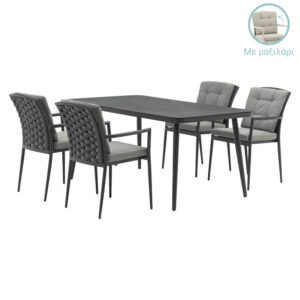 200-000345 Τραπεζαρία κήπου Naoki σετ 5τεμ pakoworld μέταλλο μαύρο pe γκρι.