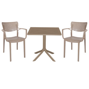 253-000100 Τραπεζαρία κήπου Groovy-Festive pakoworld σετ 3τεμ PP cappuccino 80x80x74,5εκ.
