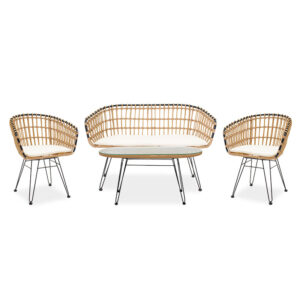 200-000336 Σαλόνι κήπου Naoki σετ 4τεμ pakoworld μέταλλο μαύρο-pe φυσικό