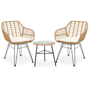 140-000022 Σαλόνι κήπου Naoki pakoworld σετ 3τεμ pe φυσικό-μέταλλο μαύρο