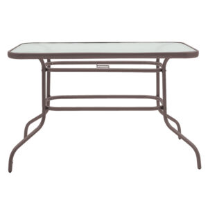 130-000028 Τραπέζι κήπου Watson pakoworld μέταλλο καφέ-γυαλί 80x80x70εκ